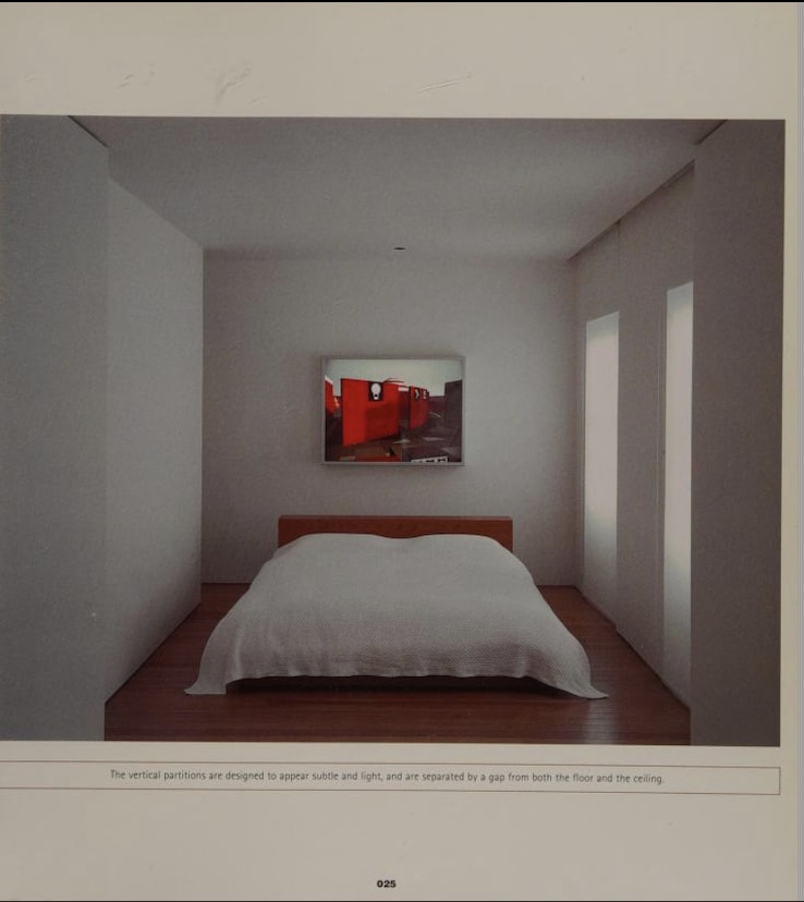 Design by John Pawson The vertical partitions are designed to appear subtle and light and are separated by a gap from both the floor and the ceiling. United Kindom https://johnpawson.com/journal