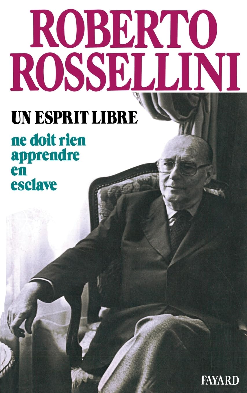 In his book, Un Esprit Libre (A Free Spirit), published in France in 1977, the year he died, Rossellini wrote of his belief that the cinema had reached a dead end. Instead he felt there was a pressing societal need for an education for the whole person in order to free people from the terrible dangers of specialization, which he saw as another form of ignorance. "We are neither ants, nor bees, nor spiders," he wrote, "and yet we have become regimented, stereotyped. . . ."[4] He believed that education today has an effect of "fixing and maintaining" what is already established in a society. He also found ridiculous educational methods that fill brains with facts while suffocating all interest into the why's of life and the world."[